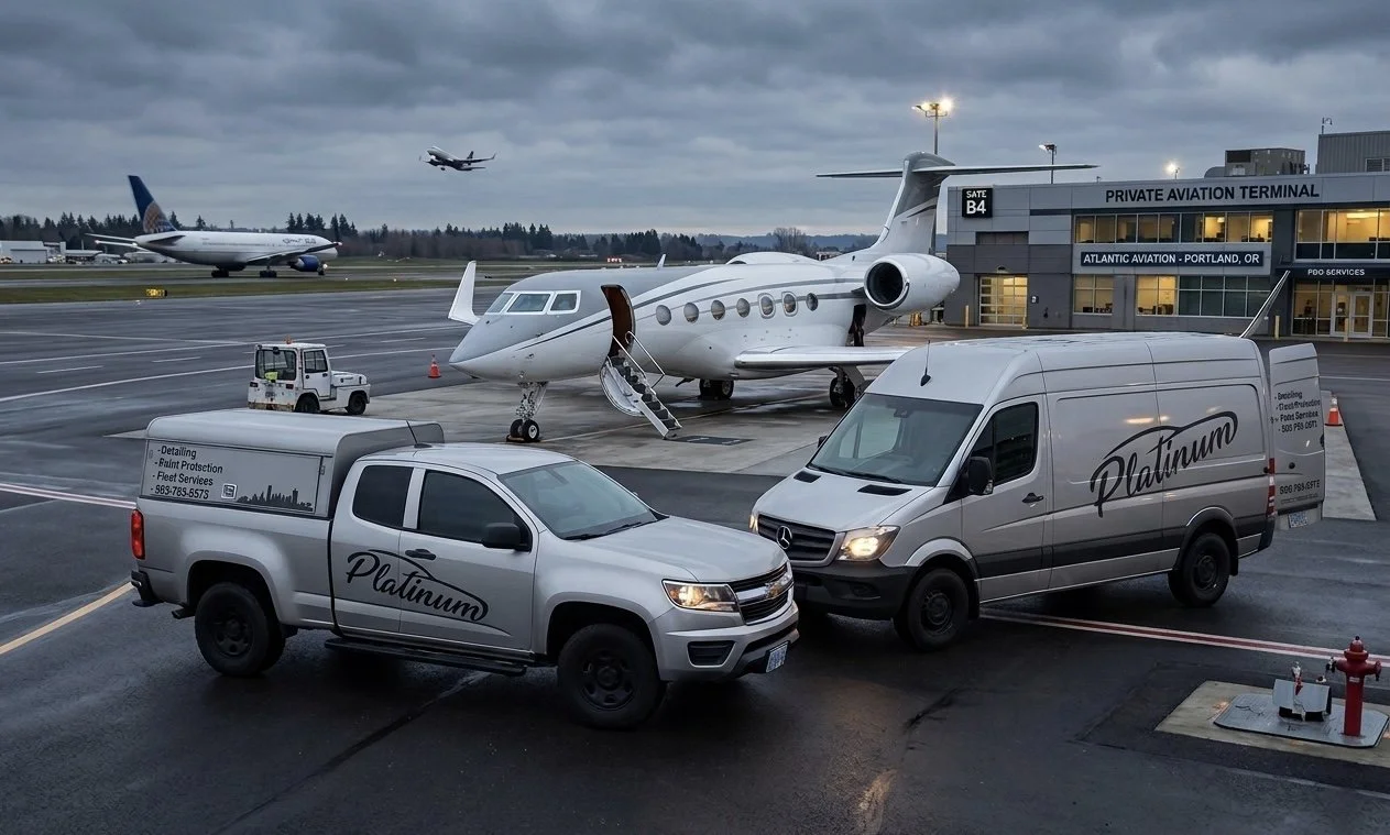 We provide 24/7 on-call aircraft detailing across the Portland metro and surrounding PNW private aviation hubs, with our primary focus on Portland International and Hillsboro Airport.